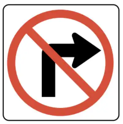 This sign is used to indicate a street that you can not turn right onto. Most often, you will see these in downtown areas. The Opposite is No Left Turn