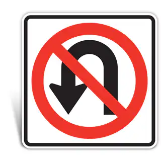 There are a few variations of a no U-turn sign. With the curved arrow showing a U-turn and bold prohibition symbol over it, this standard design is understood to express areas where drivers cannot change the direction of their vehicle into the opposite direction