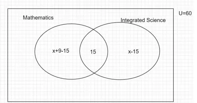 - (a) In an examination, 60 candidates passed Integrated Science or Mathematics. If 15 passed
