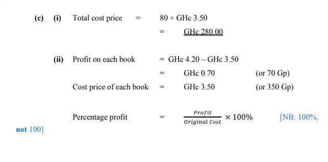 (c) A bookseller bought 80 copies of books at GH¢ 3.50 per copy. He sold each of