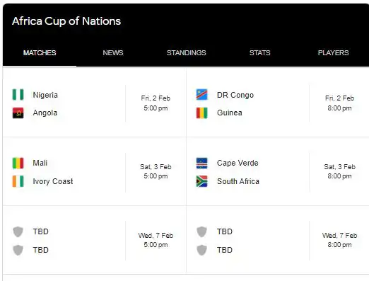 2023 AFCON Quarterfinal Fixtures