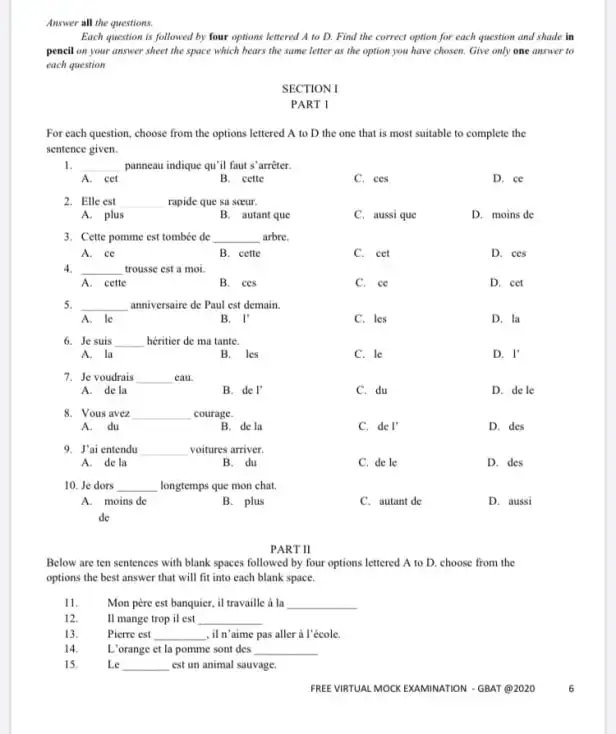 We have compiled some likely questions for the 2023 BECE French paper. Take a look. Answers to the questions are also attached.