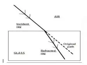 The bending of light rays as it travels from an optically less dense medium to an optically more dense medium