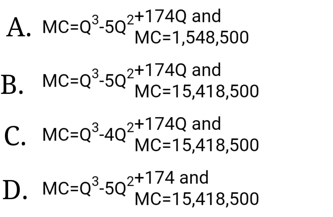 AC=Q2-4Q+174. Find the marginal cost function and its value when 250 students were admitted to the various senior high schools in the country.