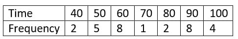 10. The table below shows the time spent (in minutes) by students at the library. What is the probability that a student picked at random spent at least 80 minutes at the library?