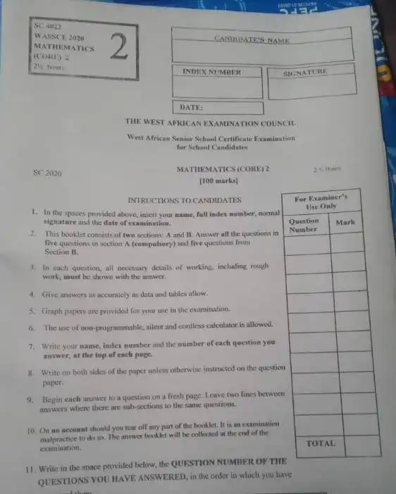 READ ALSO: Core Mathematics WASSCE Trigonometry: Sample Questions & Answers