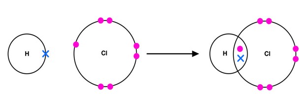 ii. It is concluded that the diagram below shows the formation of hydrogen chloride. Explain the illustration. (4 marks)
