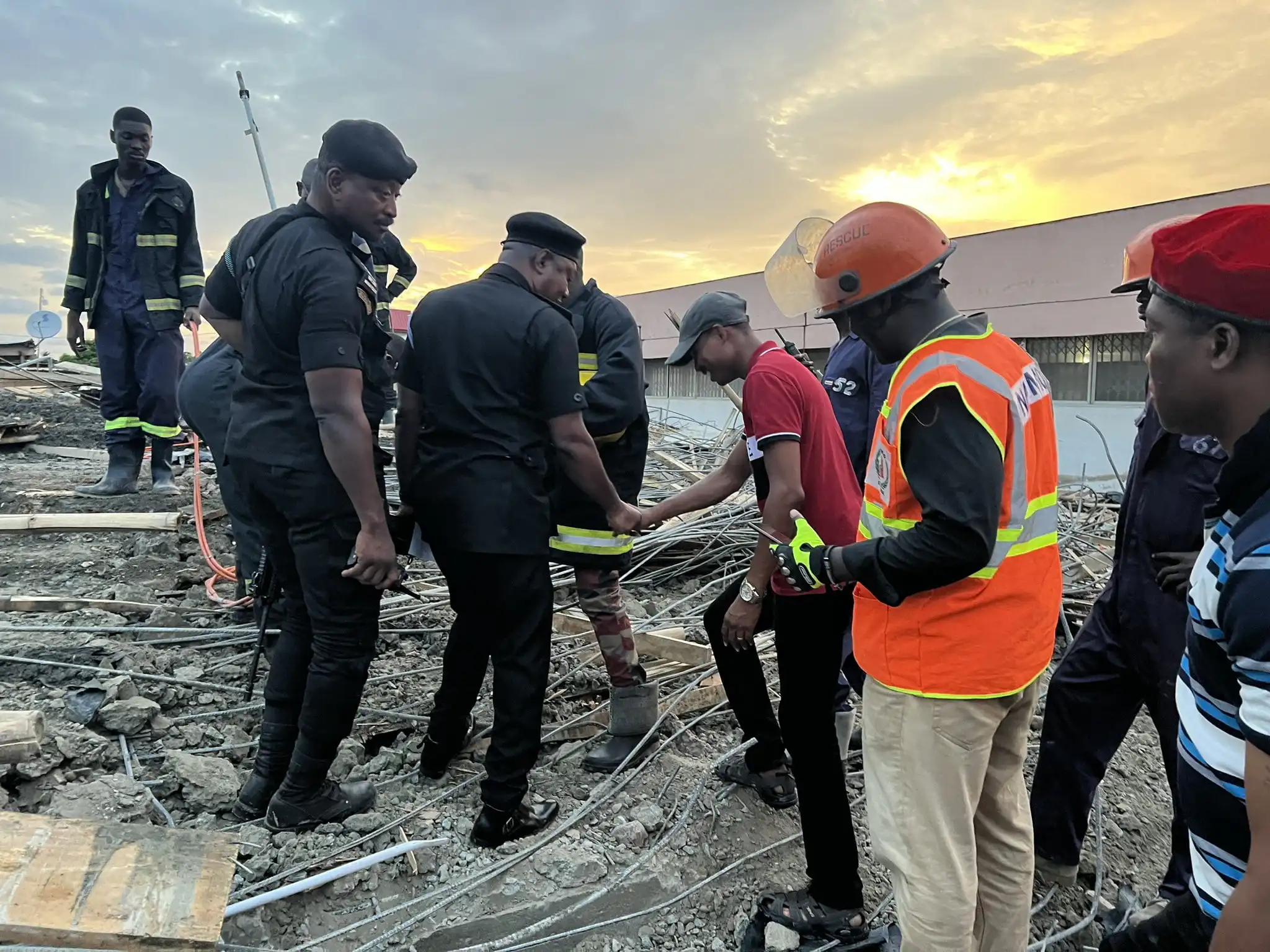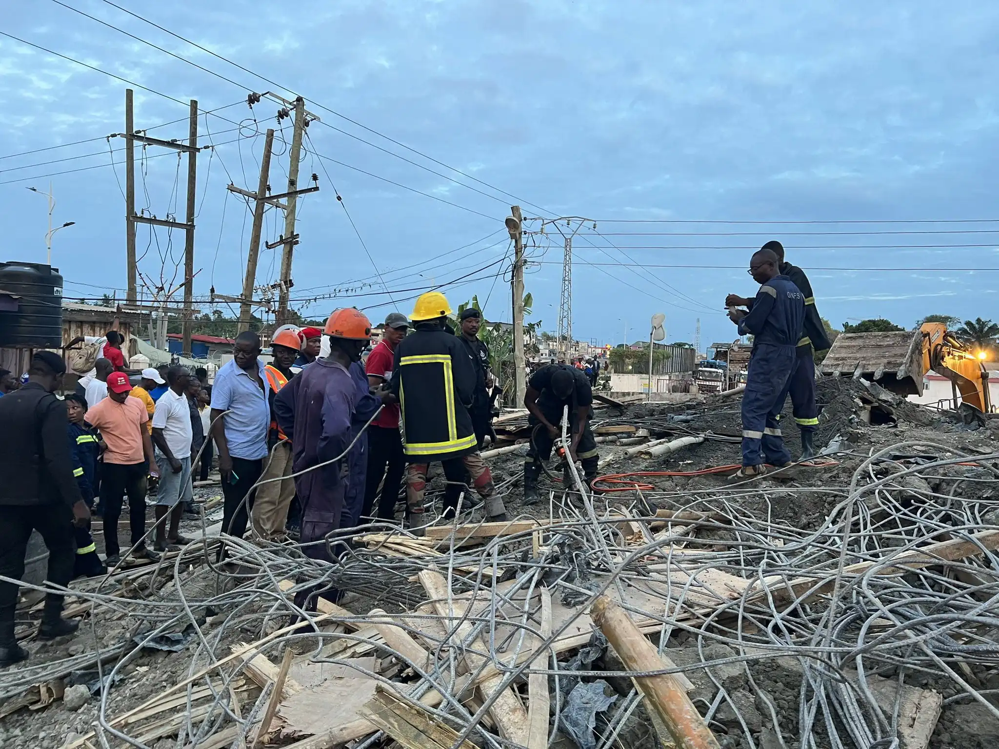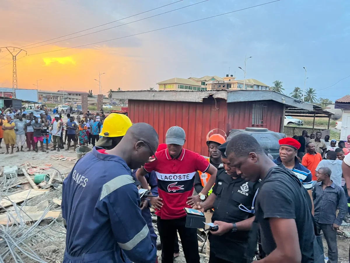 At the scene, the Ghana Fire Service Officers were using shovels and axes to attempt to remove the rubbles to rescue the person beneath the collapsed building.