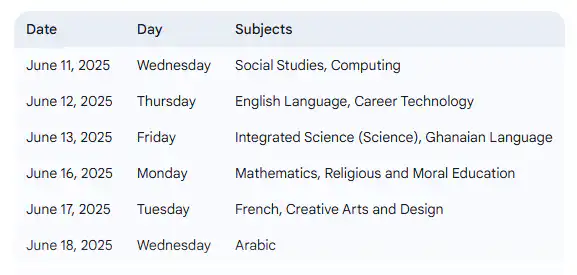 2025 June BECE Timetable