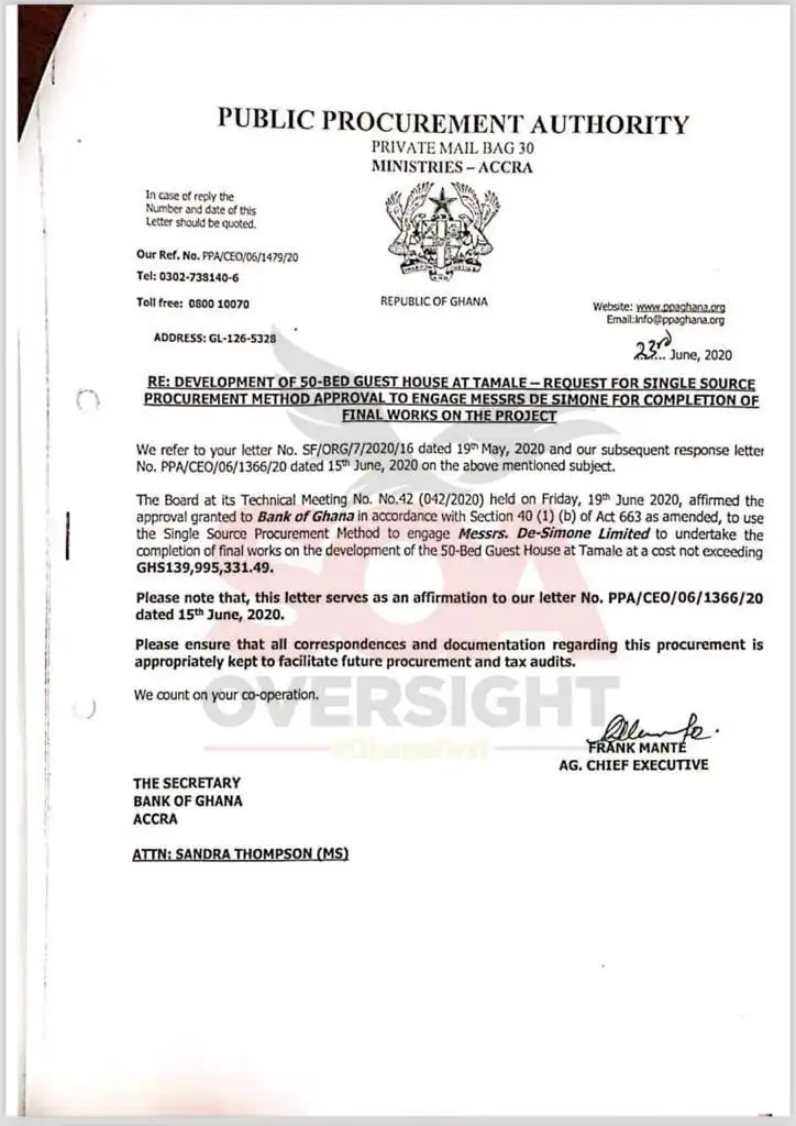 Even more puzzling, they single sourced the lavish guest house project at a staggering cost of GHS139.9million to De Simone Limited.