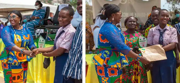 The MC for the day concluded that, “she emerged the winner of the national Junior Speller competition. She did not allow this achievement to get into her head, but she worked harder to score all ones (1) in all her papers in 2021 BECE. Having overcome her initial shiners, she has come to epitomize hard work, perseverance, and the need to educate the girl child. She has indeed made her parents, school, teachers and the municipal proud, and has become an inspiration for others to work hard.”