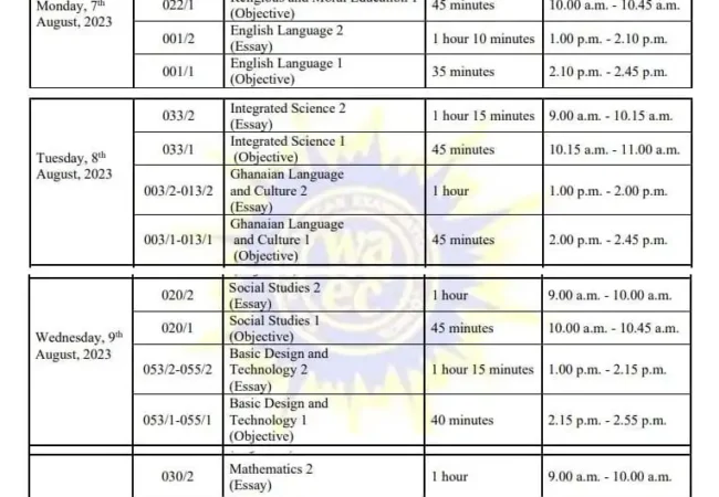 Wednesday, 9th August, 2023 will be the third day for the 2023 BECE. Four papers have been written so far, which include;...