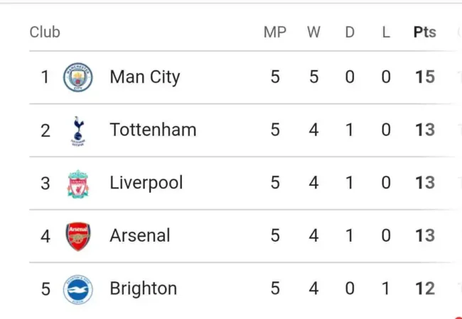 There were some interesting matches during the Match Day 5. Let's take a look at the current English Premier League Table...