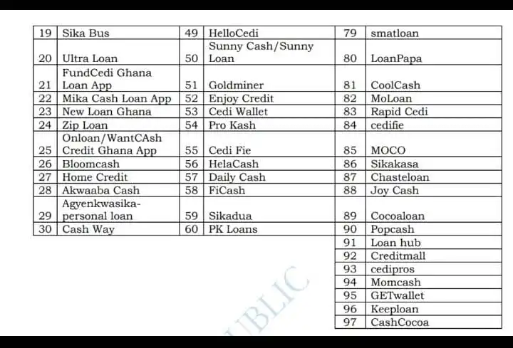 96 Online loan apps and businesses flagged by the Bank of Ghana as dangerous. The BoG has directed the public not to do business with these apps and businesses in their own interest.