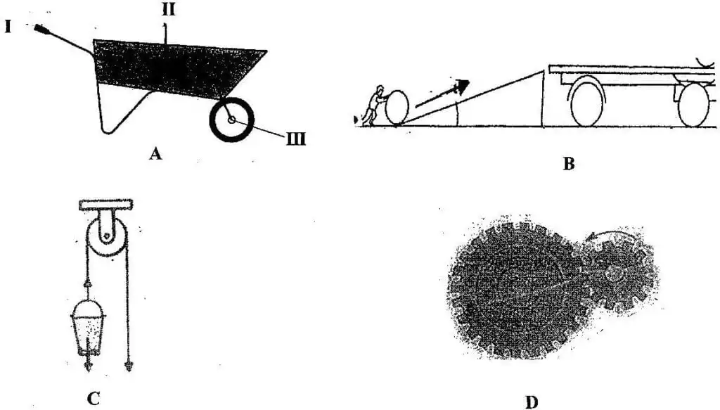 (iii) Name the parts labelled I, II and III of device A when it is considered as a lever.