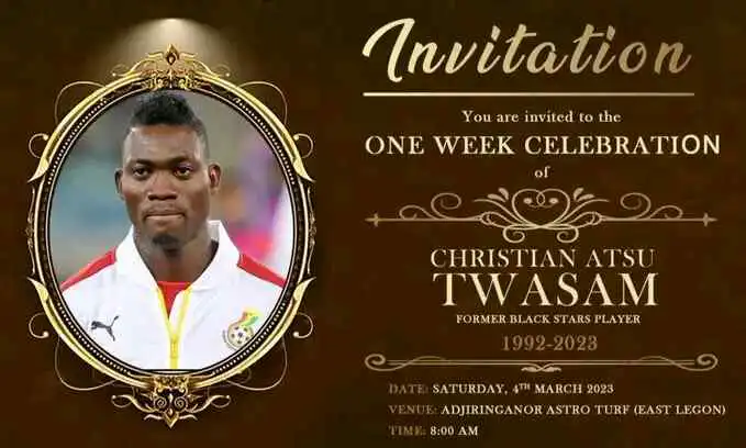 The one week observation for deceased Ghanaian footballer, Christian Atsu, is set for March 4, 2023, two days before Independence day.