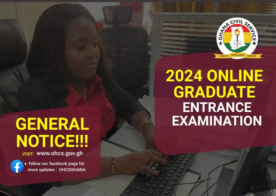 The Office of the Head of the Civil Service (OHCS) is pleased to announce the schedule and guidelines for the 2024 edition of the Civil Service Graduate Entrance Examination for recruitment to the Service for the year 2024. Graduate candidates who successfully submitted an online application through the OHCS recruitment portal will receive an SMS notification bearing further details on the examination.