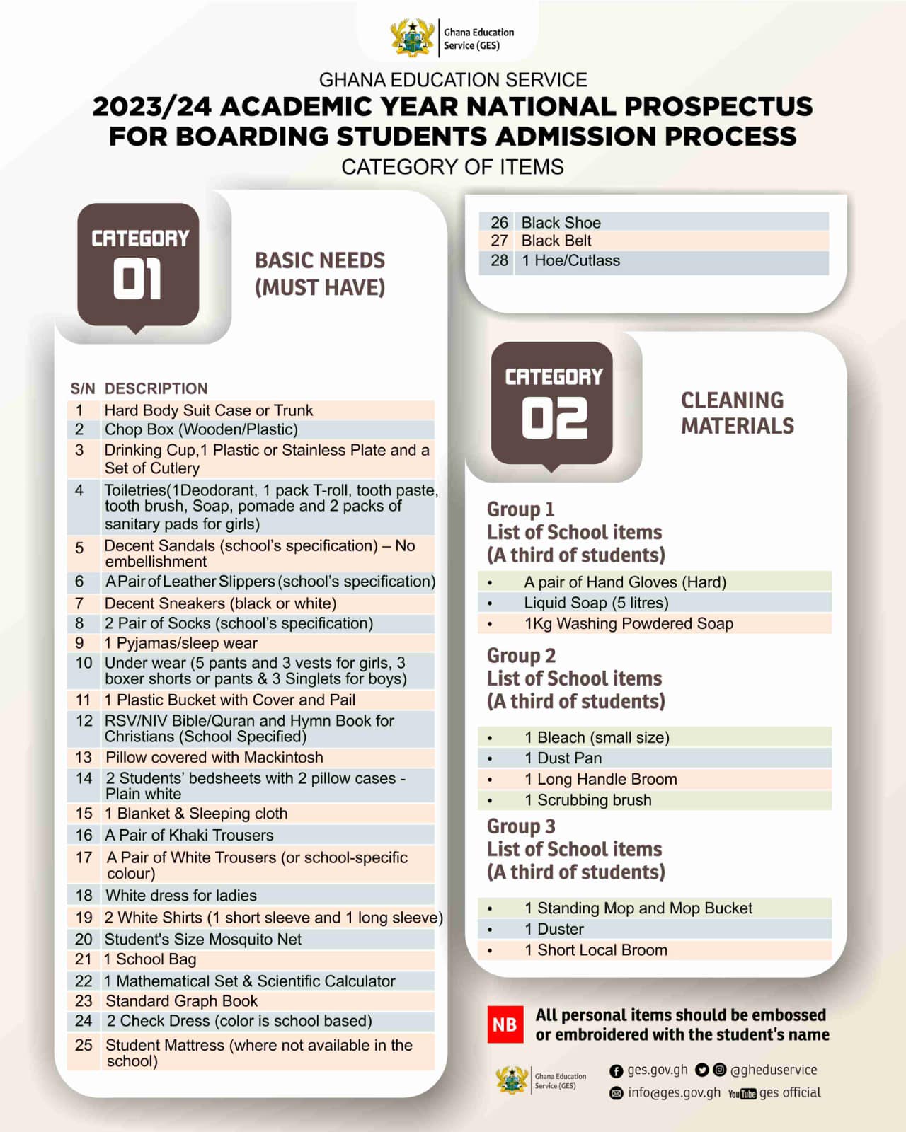 Per the released school prospectus, only boarding students will be purchasing several of the itineraries. It will make no logical sense for a parent to spend money buying all the items that have been estimated to cost not less than GHS 2500 when the purchase is not yet out.