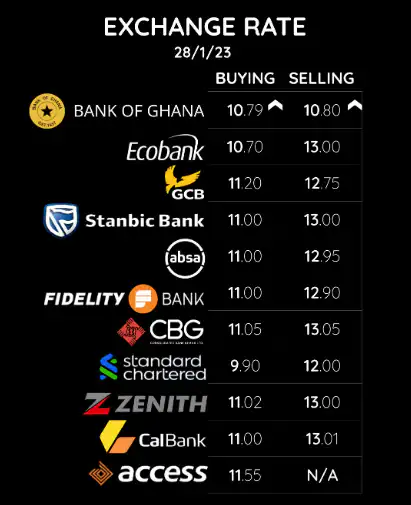 Below are the Dollar-to-Cedi rate for today as well as exchange rates for other major trading currencies.