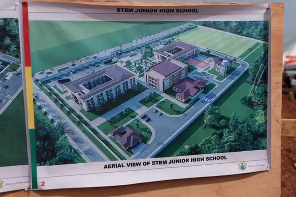 The team cut a second sod for the construction of another 21st Century Model JHS where STEM will be the focus of learning. The Hon Ama Pomaa Boateng (MP for Juaben Constituency & Deputy Minister for Communications & Digitalisation) and Chiefs of Juaben witnessed the sward cutting.
