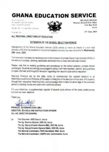 The Regional Directors of Education have been asked to make stakeholders of the Metro/Municipal/District Directors, aware of this updated deadline so that they disseminate the information to final-year JHS students through their respective Head teachers. Students are encouraged to take advantage of this period to review carefully and select their preferred schools.