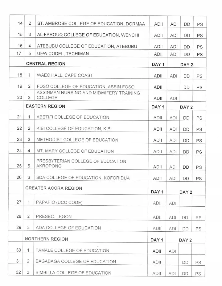 4. The following centres have been dedicated to candidates with special needs (particularly visually challenged candidates) to write their exams: Wesley College – Kumasi; Presbyterian College of Education – Akropong and NJA College of Education – Wa.