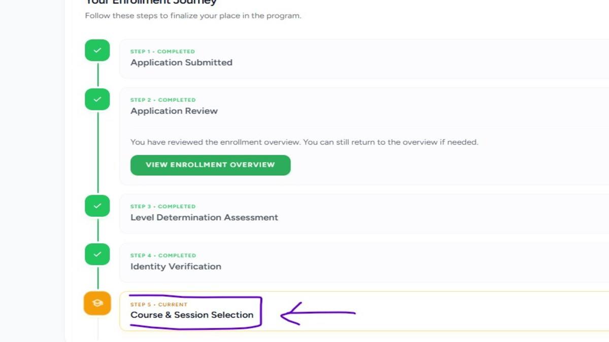 Before finalizing your selection, go to the Application Review section on your dashboard. Read through the enrollment path carefully. Once you choose a course, your selection may become “locked” while admissions are finalized, so ensure you pick the programme that best aligns with your career goals.