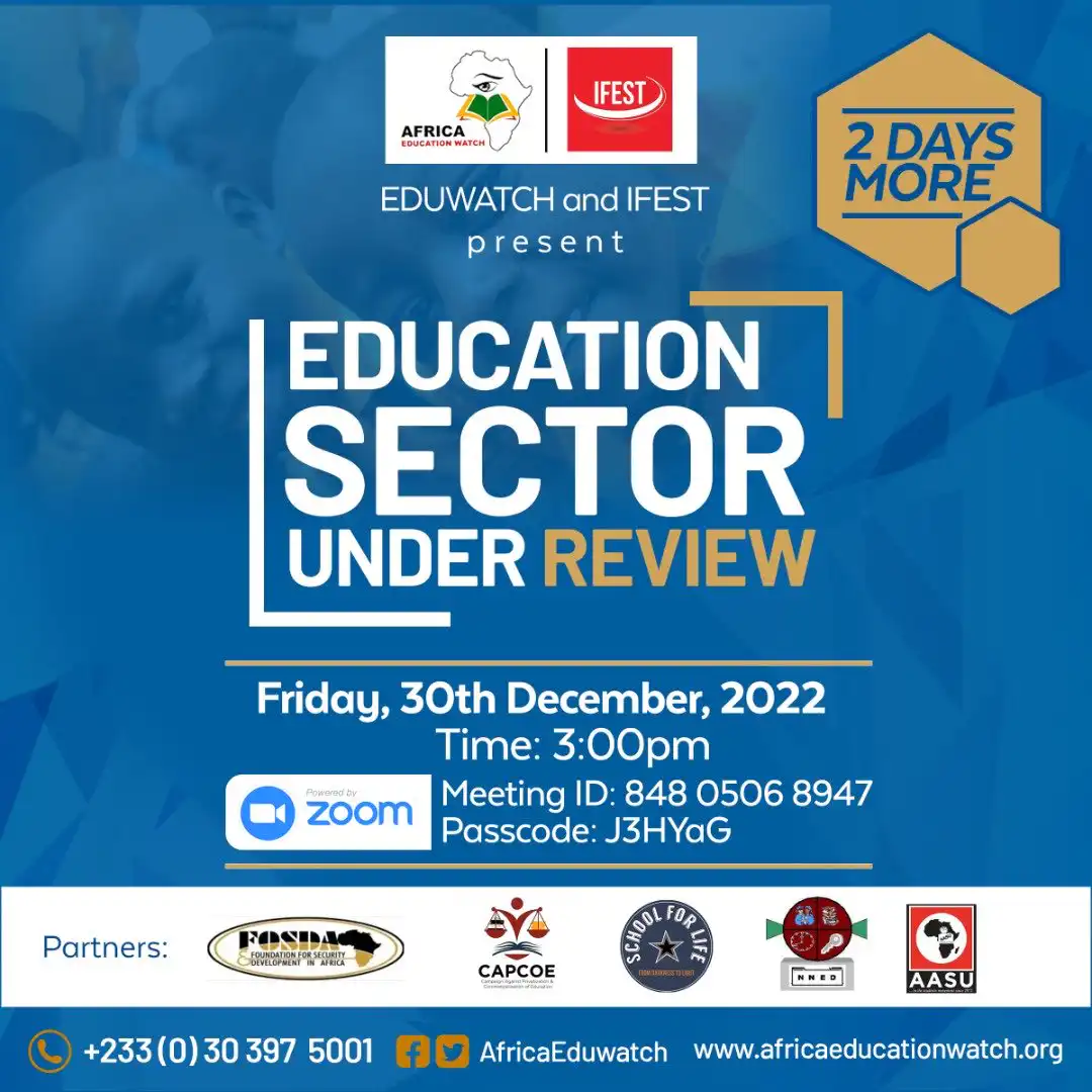Africa Education Watch, an Education Think-Tank in collaboration with IFEST is organizing a one-day Education Sector Under Review Programme. The event is expected to bring together some of the finest and critical thinkers in the education sphere from the classrooms to the policy implementors as well as education policy advocates and more.