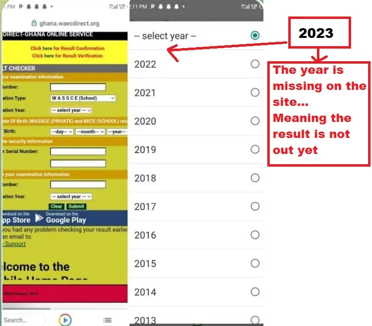 When you visit the official result portal, you will notice that when you click on the exam year, you do not have 2023 as part of the years. That is one indication that WAEC has not released the results.