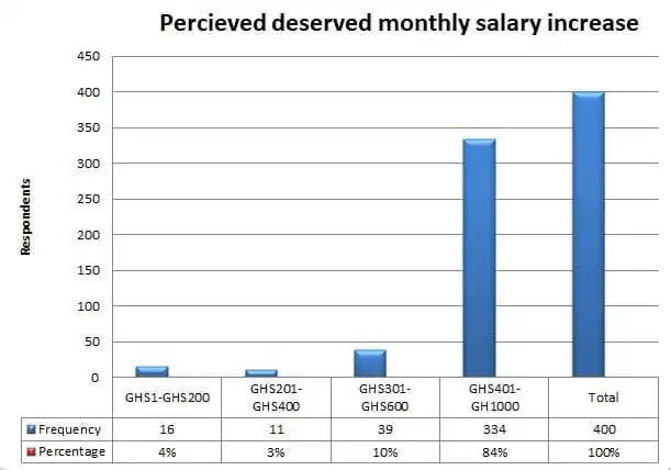 The data from the teachers preferred hourly rate showed that the least teachers expect to be paid is, GHS4000 whiles the highest is GHS20,000. However, no teacher currently has a gross pay that equals $500.00 and many more take home less than $250 a month after the deduction of taxes and other statutory charges.