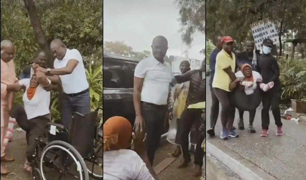 In a video making waves on the internet, Kennedy Agyapong could be seen with his team donating a brand new wheel chair to a woman who was seen by the road side. Aside this, Kennedy Agyapong presented an amount of money to the woman.