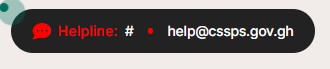 The new school placement portal has a helpline section on the top left of the site. While the helpline is in red and on a rounded-edged black background, it is very visible. The phone line for calling the school placement has not yet been entered and all you see now is the symbol # however, the email available for reaching the placement portal administrators, “help@cssps.gov.gh”, has been updated. The Helpline section is shown below.