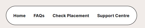 The portal comes with an easy-to-identify menu. The menus are in Black font colour on a four-round, shed-rectangle curve, which is made super identifiable by the black line edges. The menu section contains the following menus: |Home| FAQs| Check Placement| Support Centre|