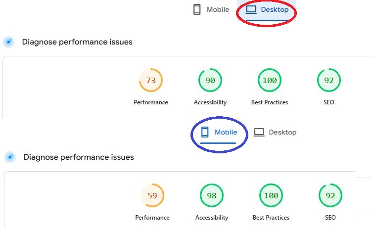 On both Desktop and Mobile, the site is optimised for SEO thus 92 out of 100 for both. The site design follows best practices and scored 100% for both Desktop and Mobile checks however, the site has issues with performance, thus how fast it will load for users. It has a mid-range score of 73 for Desktop and 59 for Mobile. Both are not the best.