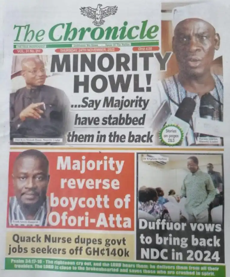 - Minority Howl, says the majority have stabbed them in the back in an effort to take Ken Ofori-Atta out of office through a vote of censure.