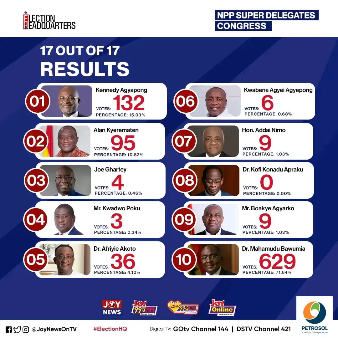 READ: NPP Super Delegates Provisional Results show Bawumia is leading