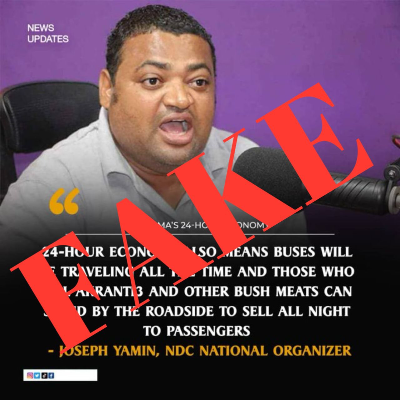 I have taken notice of the deliberate disinformation campaign launched by the ruling New Patriotic Party and their fake media outlets against the visionary 24-Hour Economy Strategy of H.E John Dramani Mahama.