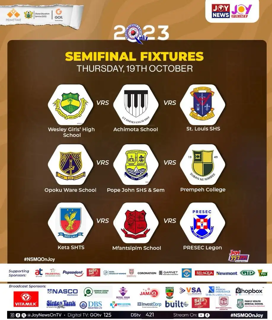 It is certain to be a closely contested competition and we wish all the schools the best of luck in the NSMQ 2023 Semi-Finals showdown