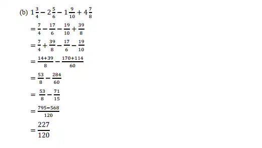 In part (b), most of the candidates were able to convert the mixed numbers to improper fractions and attempted to simplify but most of them did not apply the BODMAS concept correctly.