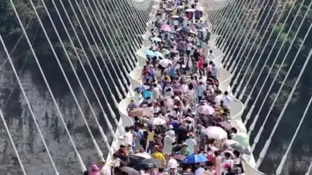 Following this dramatic test, the bridge was opened to the public, and the visual spectacle was nothing short of awe-inspiring. Striking images captured multiple individuals simultaneously strolling on the transparent walkway, creating a surreal experience reminiscent of walking on air with an unparalleled view.