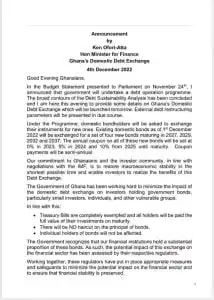 Our commitment to Ghanaians and the investor community, in line with negotiations with the IMF, is to restore macroeconomic stability in the shortest possible time and enable investors to realize the benefits of this Debt Exchange.
