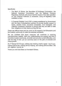 - The Bank of Ghana, the Securities &Exchange Commission, the National Insurance Commission, and te National Pensions Regulatory Authority will ensure that the impact of the debt operation on your financial institution is minimized, using all regulatory tools available to them