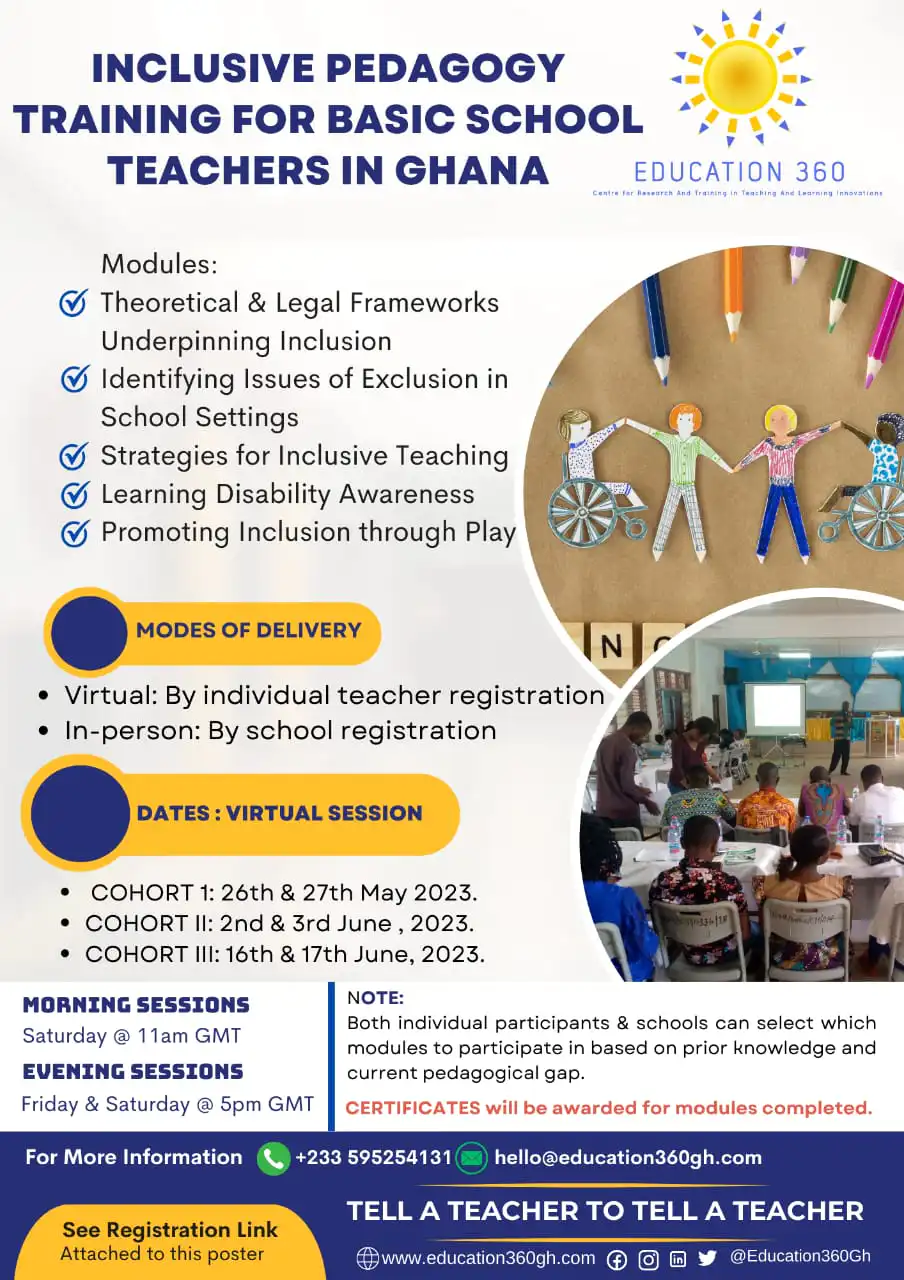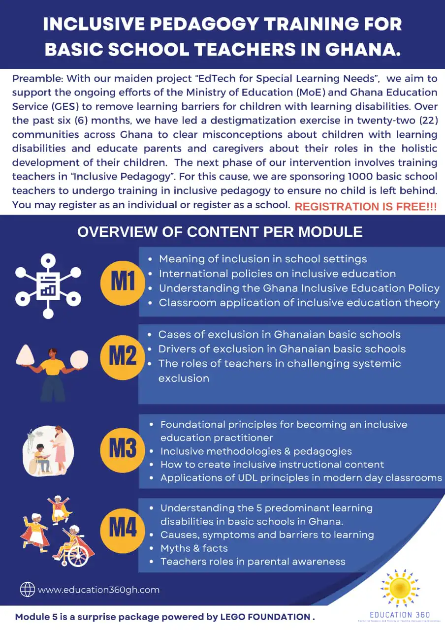 Education 360 is sponsoring 1000 basic school teachers in Ghana on removing learning barriers for children with learning disabilities. This is part of efforts to help ensure learners get the best from education and their teachers in every classroom.