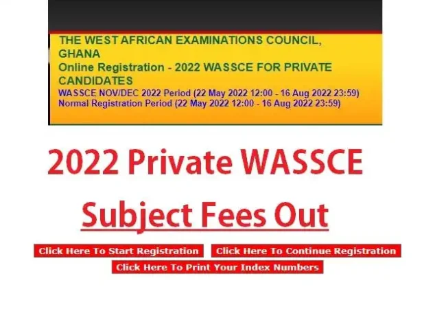 2022 Private WASSCE Subject Fees Out (CHECK DETAILS HERE)The West African Examination Council, WAEC 2022 Private WASSCE subject registration fees are now out for students who want... Wisdom K.E Hammond May 24, 2022