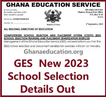 The Ghana Education Service (GES) releases new 2023 School Selection Details covering school selection Dates, Processes and...