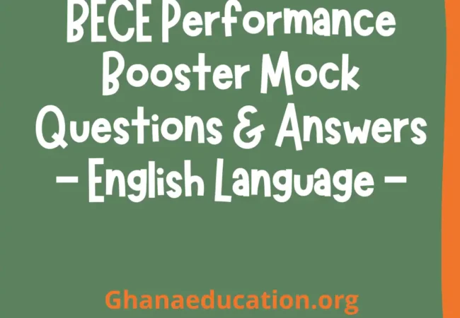 BECE English Language Performance Booster Mock Questions & AnswersDownload BECE Performance Booster Mock Questions and Answers for October Candidates. This English Language BECE booster... Wisdom K.E Hammond August 1, 2022