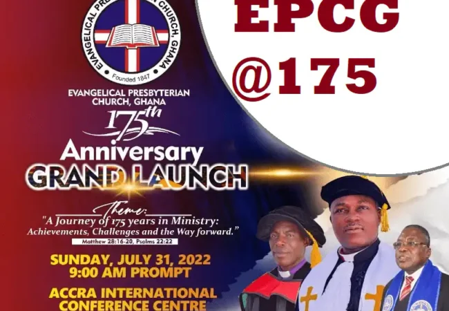 E. P Church Ghana To launch 175th anniversary on 31st JulyThe Evangelical Presbyterian Church, Ghana (EPCG) would on July 31st, this year launch her 175th anniversary celebration at... Wisdom K.E Hammond July 28, 2022