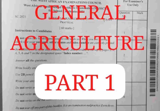 General Agriculture WASSCE Questions (Part 1) – Solve NowThe General Agriculture WASSCE paper will be written on 1st September, 2023. Let's take a look at these likely questions. 1.... Rexford Dede Baah-Nyarkoh August 21, 2023