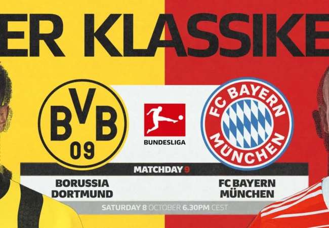 Both teams are tied with 15 points after eight games, but Bayern is one spot ahead of their opponent in Der Klassiker...