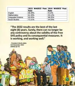 According to Nana Addo, these results close all debates on the “validity of the Free Senior High School policy”. President Nana Addo dropped a table to compare the WASSCE pass rates for the year 2016 when Mahama was President, and the year 2022.